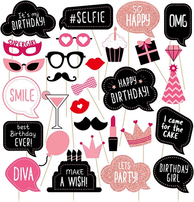 To put together a photobooth-inspired shoot at your birthday party, you should buy a bunch of fun photo booth props that you can your friends can use to make some silly and super cute photos for you to be able to remember your party by!
